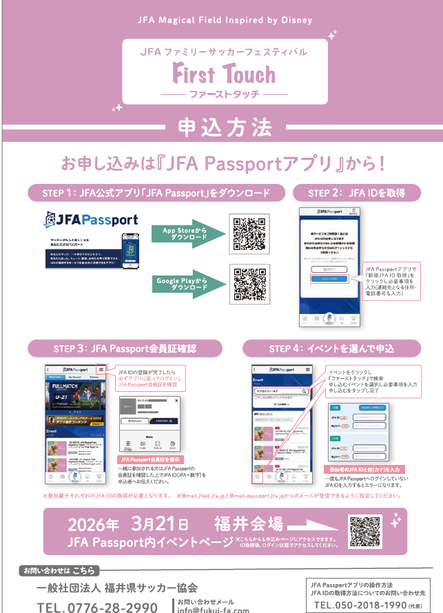 初心者・未経験者向けのファミリーサッカーフェスティバルを開催します。 参加者のお子様にはディズニーオリジナルTシャツをプレゼント🎁 参加料は無料です